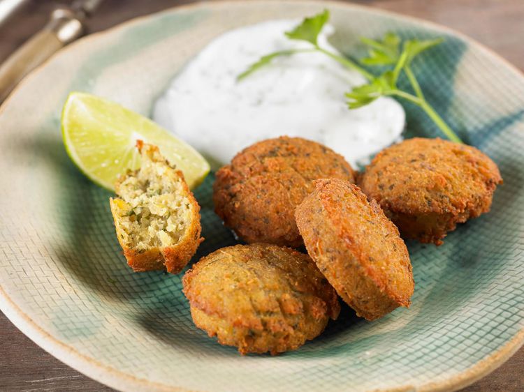 Una receta típica de la cocina árabe. El falafel es una especie de croqueta elaborada con garbanzos o habas triturados y unidos con ajo y cilantro. Se hace una bola y se fríe en aceite caliente. Hay muchas formas de preparar y servir el falafel con diferentes salsas, aliños y formatos. Lo ideal es acompañarlo con abundante ensalada verde y una buena cerveza en verano o un buen vino en invierno. Muy rico, sano y nutritivo.